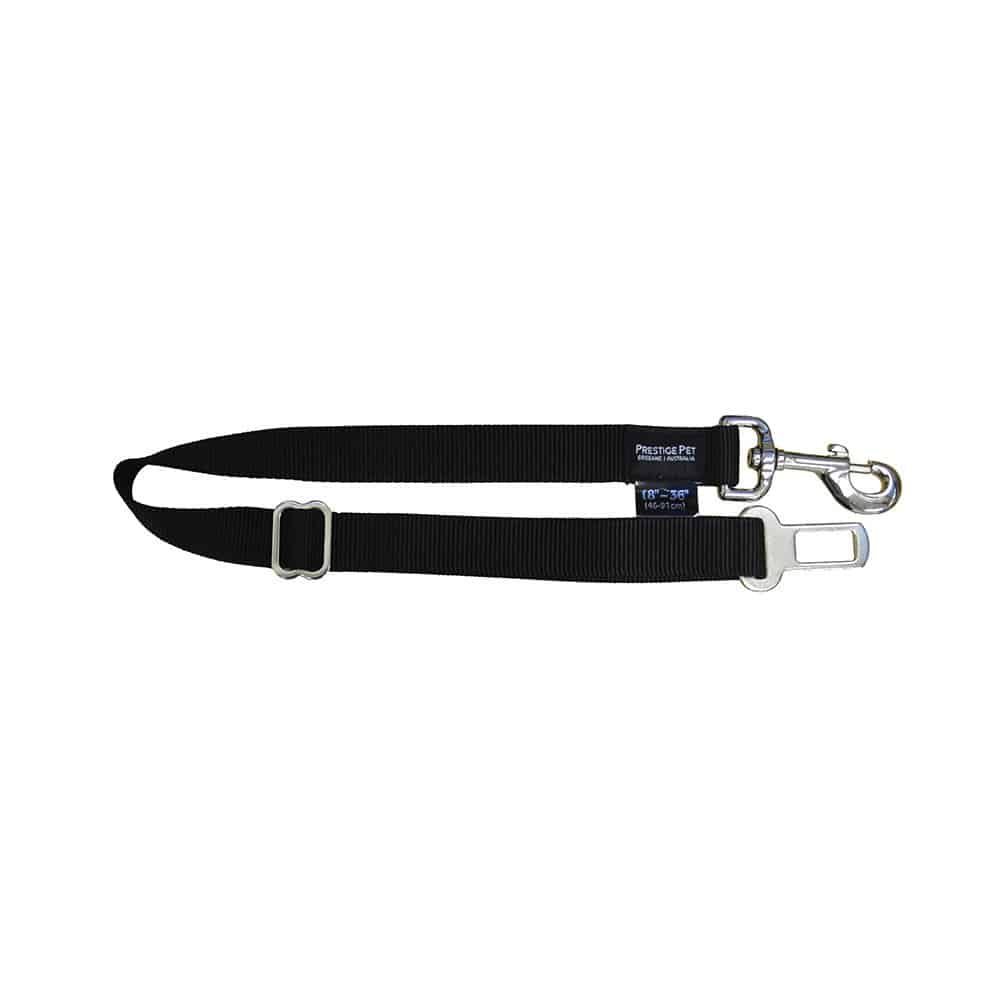 Keep your dog more secure and safer with the Prestige Seat Belt Attachment. Made from durable nylon, this attachment adjusts from 46-91cm and features a quick release bolt snap hook, which easily attaches to a harness. The opposite end has a seatbelt insert which is quick and easy to attach and release and is designed to fit most standard seatbelt sockets.